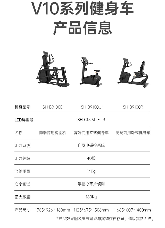 舒华立式商用健身车SH-B9100U(V10)触屏版拥有超大显示和操作屏幕, 可以任意设置阻力、时间和距离等参数,还可以即时显示心跳和转速等数据,同时,SH-B9100U提供多项科学运动处方,更轻松掌握运动节奏。